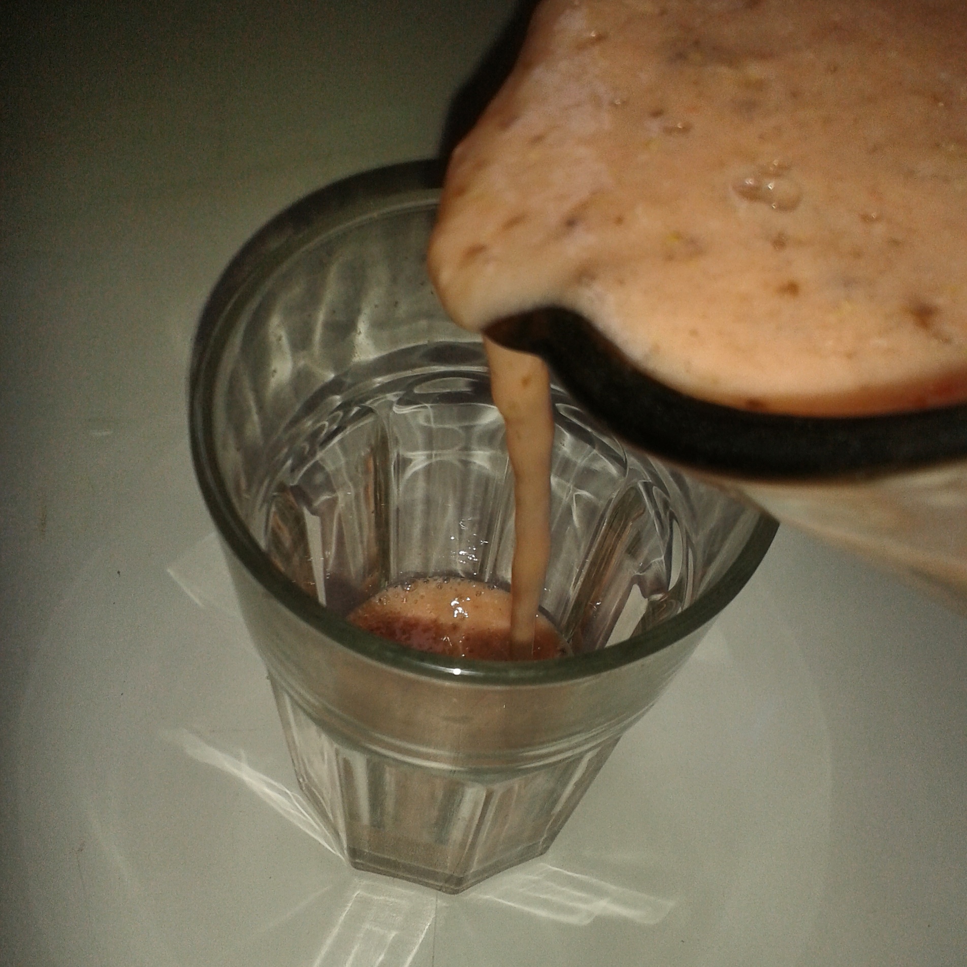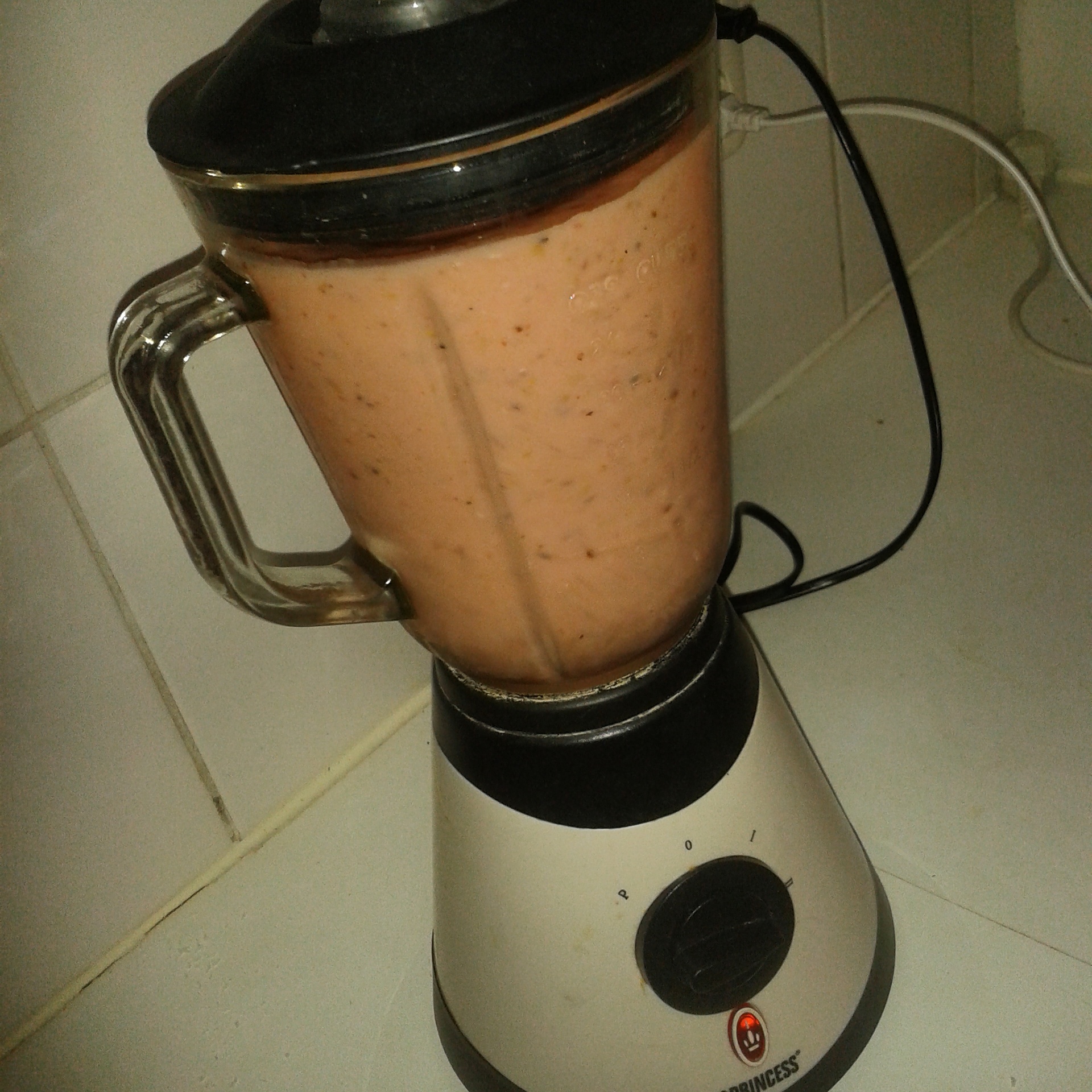Blend it en klaar om te schenken. Het voordeel van een smoothie is dat je het binnen no time op hebt. Scheelt je weer wat tijd tijdens alle haast in de ochtend.