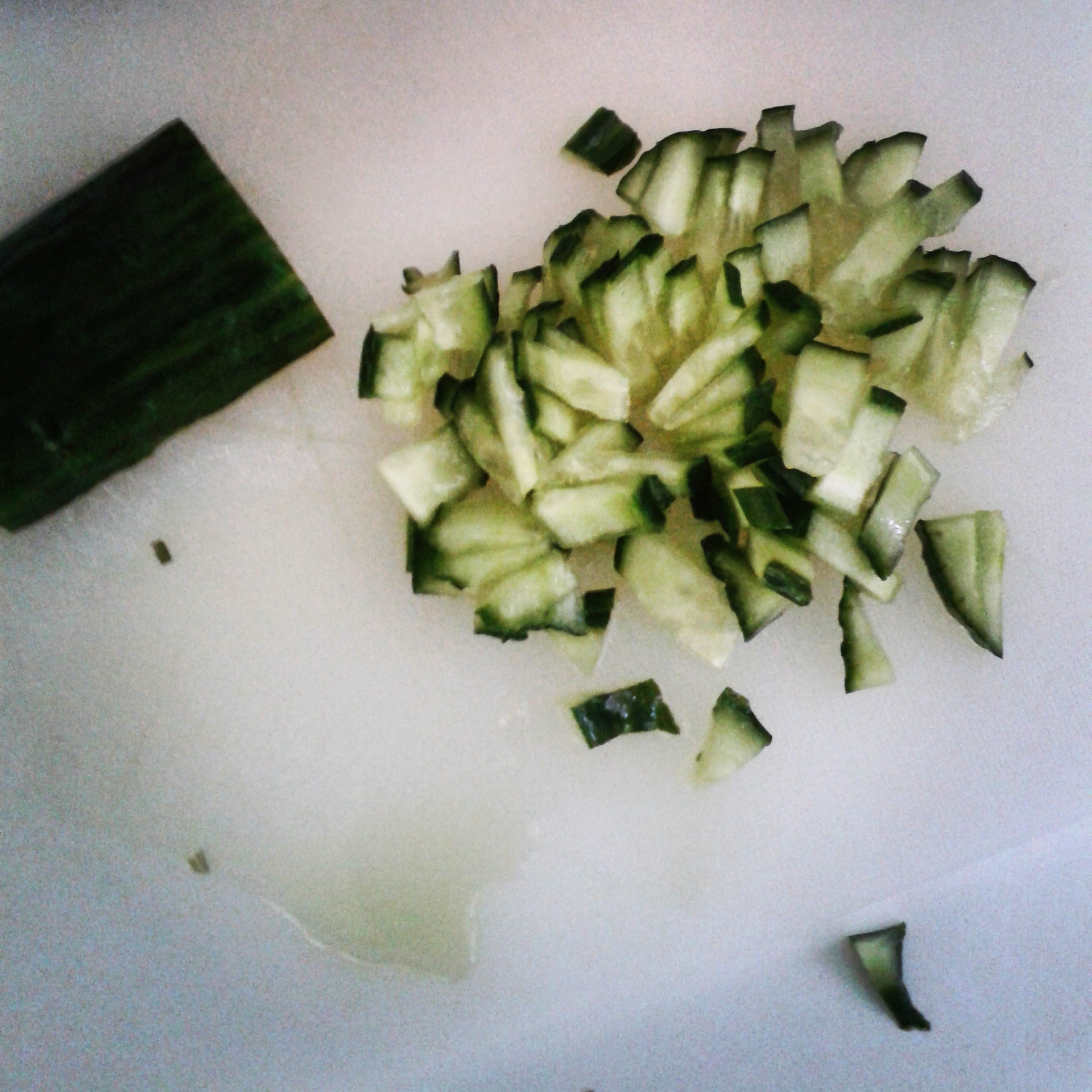 2. Snijd de komkommer en zongedroogde tomaatjes in fijne stukjes.