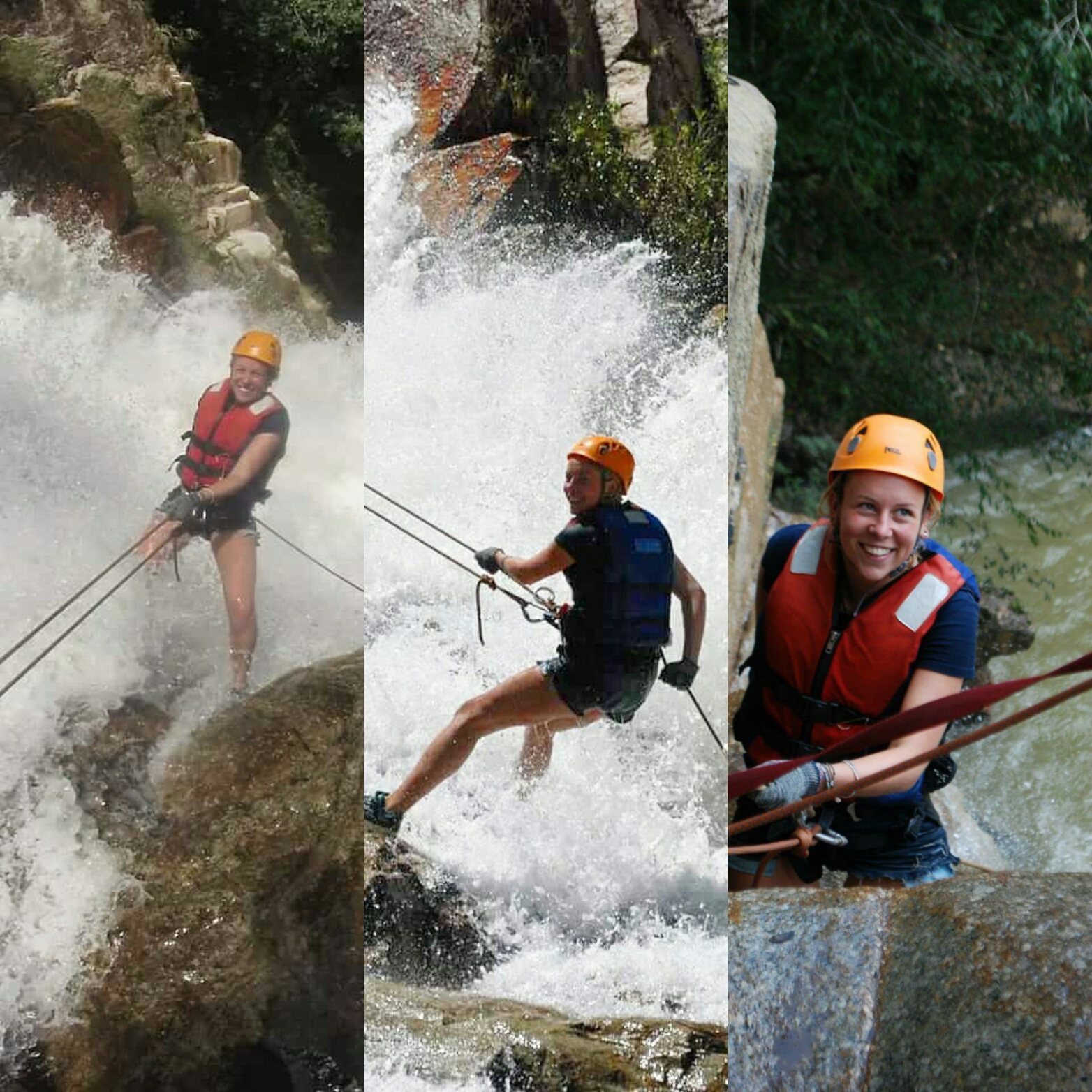 Na 18 uur kom ik in Dalat aan waar het een stuk koeler is, heerlijk! Ik ben nogal gaar en doe het rustig aan. ’s Avonds eten we met iedereen van het hostel op de grond een heerlijke huisgemaakte Vietnamese maaltijd. De volgende ochtend sta ik vroeg op voor een avontuurtje waar ik behoorlijk zenuwachtig voor ben en néé dit is geen gebruikelijk avontuurtje ;). Ik ga canyoningen. Wat? Ja dat dacht ik ook toen ik het voor het eerst hoorde. Maar dat is dus eigenlijk gewoon abseilen in watervallen. Nou ja gewoon ook weer niet helemaal als je bedenkt dat ik hoogtevrees heb. Al moet ik zeggen dat het steeds beter gaat, maar skydiven sla ik voorlopig nog even over. Maar ik heb deze afdalingen allemaal gedaan en het was fan-tas-tisch! De hoogte viel me mee (lees: niet naar beneden kijken) maar dat water was heftig.. best logisch als je in een waterval gaat abseilen. Ik had alles uiteraard heel goed onder controle (NOT) en ging bij de laatste waterval behoorlijk af. Hang je dan aan een touw met je lenzen ergens in je oogkas waar ze niet horen op een van de mooiere plekken op aarde. Maar het is allemaal goedgekomen, ik leef nog.