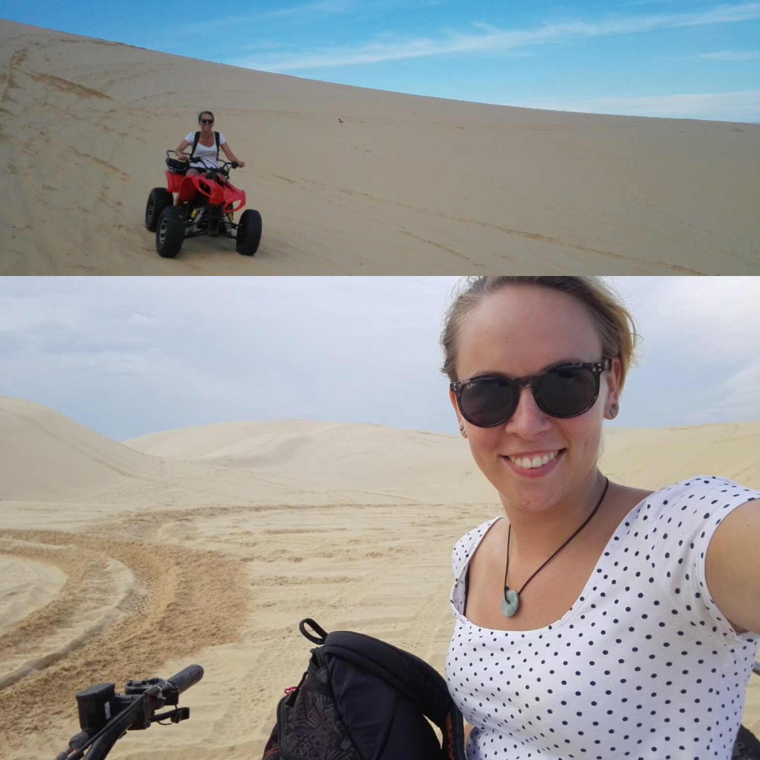 Vanuit Dalat reis ik de volgende dag naar Mui Ne en zie een bekend gezicht in de bus. In Hoi An waren namelijk veel mensen uit Leiden en dit is er een van alleen kennen we elkaar nog niet. Tijdens de stop loop ik op hen af, het duurt even voor het kwartje valt en hij door heeft wie ik nou ook alweer was. Super chille gasten in eerste instantie en later blijkt dit ook op lange termijn. Diezelfde avond nog gaan we met elkaar eten en stappen, omdat het te laat is om nog een tour te doen. Na 12en belandden we in de dragon bar, de lokale bar van dit plaatsje. Heerlijke tent die voor de helft gevuld is met locals en de andere helft met toeristen. De alcohol vloeit rijkelijk en 2 jongens die ik in Hoi An heb leren kennen sluiten ook aan, top avondje! De volgende dag ga ik met een lichtelijke kater samen met Casper en Marc de tour doen. Heel energiek zijn we niet, totdat we mogen quad rijd in de hoge zandduinen. Fucking geniaal om met zo een gammel voertuig, die niet meer echt vergelijkbaar is met een normale quad, te racen in zo een mooie omgeving. Helaas gaan de 20 minuten snel voorbij. Die avond belandden we weer in de dragon bar en hoef ik jullie denk geen verdere uitleg meer te geven.
