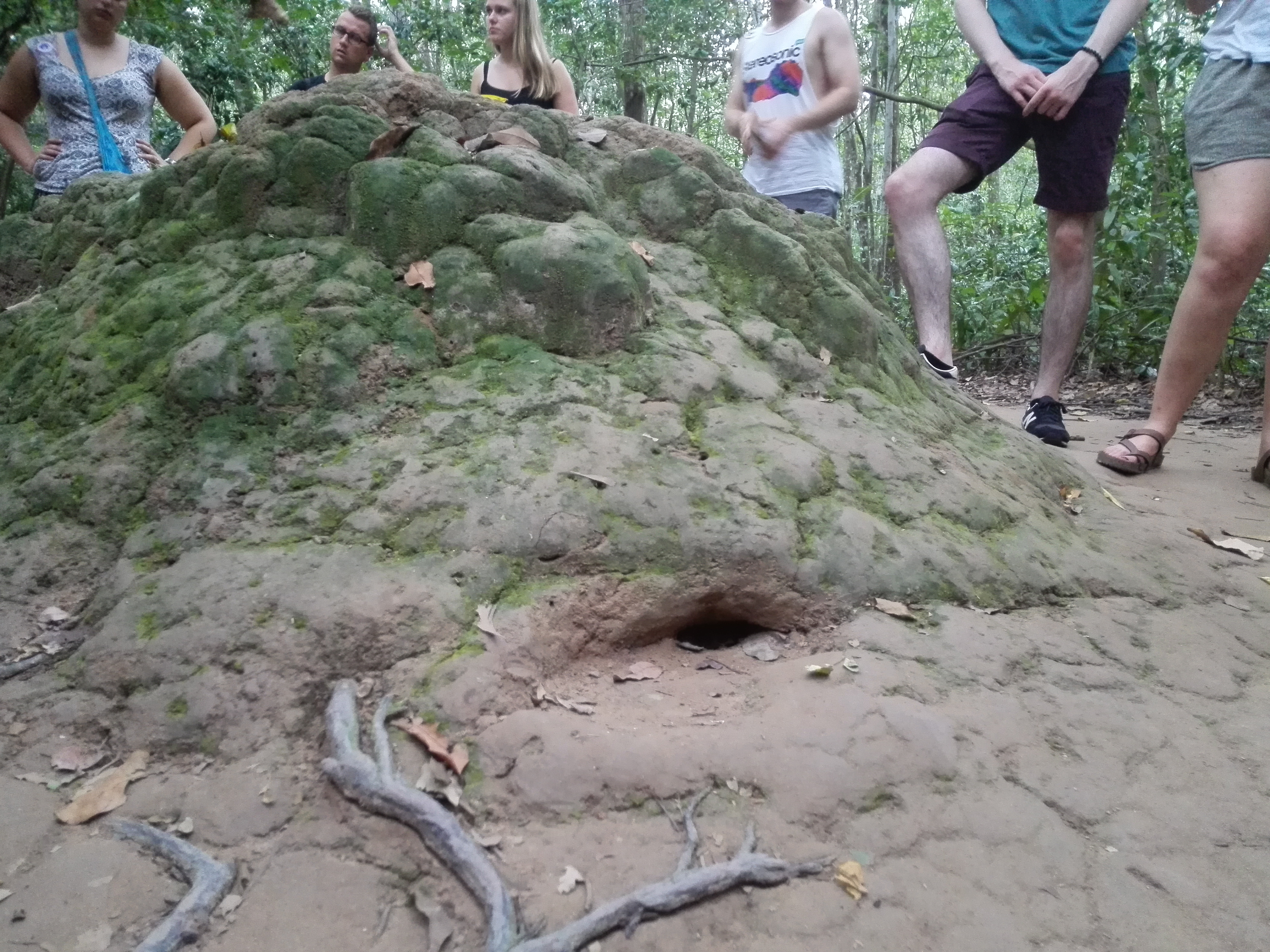 De volgende dag reizen we met zijn drieën af naar HCM, dé hoofdstad van Vietnam. Als we de stad in rijden merk ik gelijk dat ik dit een fijnere stad vind dan Hanoi. Moderner, schoner en minder chaotisch, al moet ik zeggen dat het op sommige drukke punten net Bangkok is. Het hoogtepunt van HCM zijn toch wel de cu chi tunnels, die overigens 2 uur rijden van de stad liggen. Valt dat even tegen als je denkt een excursie te pakken waarbij je denkt hooguit een halfuurtje te moeten rijden. Als je ooit naar Vietnam gaat moet je dit zeker doen, heel indrukwekkende excursie over de oorlog. Je kan ook schieten als je daar behoefte aan hebt, maar dat heb ik maar even aan die gasten overgelaten. Voelde nogal dubbel om in een oorlogsgebied te gaan staan knallen, maar voor mannen is dat een droom natuurlijk (dat schieten dan). Wel ben ik in de tunnels geweest die de Vietnamesen toendertijd gebruikte om te overleven, vluchten en ontsnappen. Voor toeristen is het mogelijk om 150 meter door deze super smalle en lage tunnel te kruipen. En again, I did it! Moet er natuurlijk wel even bij vertellen dat ik er als een wandelende waterval uitkwam en ik mijn shirtje zo ongeveer kon uitknijpen.