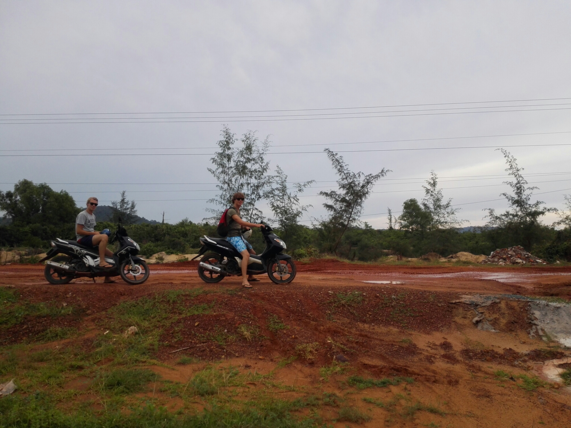 De volgende dag gingen we over het eiland touren dus een goed moment om naar huis te gaan. Aan het eind van de volgende ochtend stapte we op de scooter om het eiland te verkennen. Heel bizar om te zien hoe erg dit eiland in ontwikkeling is als voorbereiding op de massatoerisme. Overal langs de kustlijn worden bomen gekapt om plaats te maken voor grote resorts. Ik denk dat ik dit eiland over 5 jaar niet meer terug herken. Verder wel echt een vette rit gemaakt over een weg die top gear waardig is, beetje jammer dat we een lekke band kregen. Maar Azië zou Azië niet zijn als ze je niet gelijk helpen en je binnen een kwartier weer verder kunt rijden. Die avond spelen we lekker suf jenga, omdat er verder geen reet te doen is.