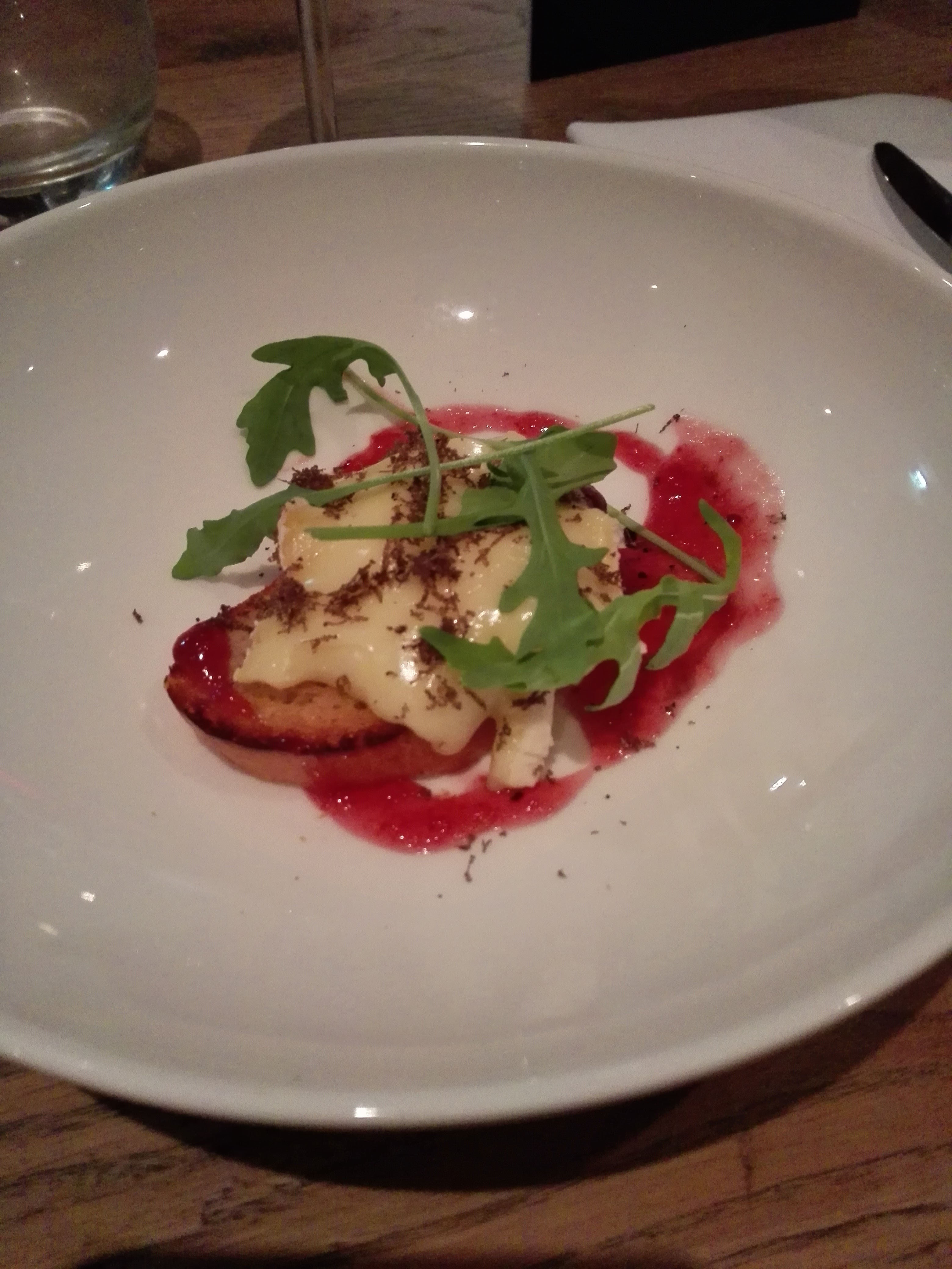 Toen volgde er een overheerlijke getoaste briochebrood met een warme compote van vijgen, Vacherin Mont d’or en wintertruffel. Als kaasliefhebber kon mijn geluk niet op, wat een lekkere kaas en in combinatie met de zoete compote helemaal om je vingers bij af te likken. Dit ga ik sowieso zelf een keer proberen te maken.