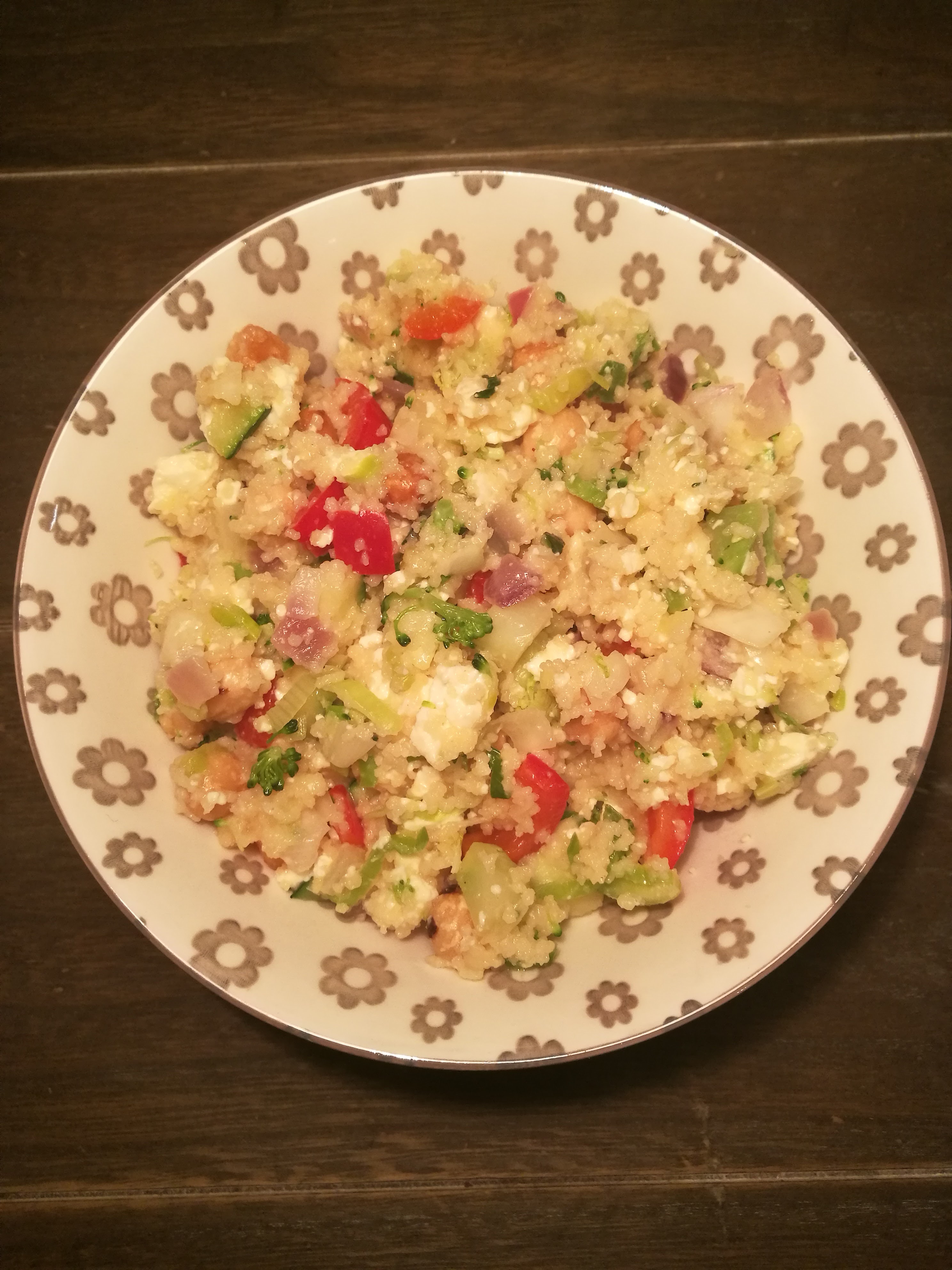 Healthy couscous met roerbakgroenten, witte kaas & hazelnoten