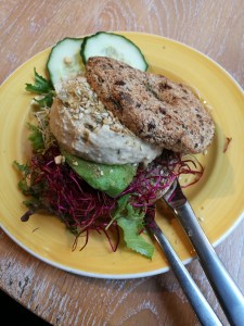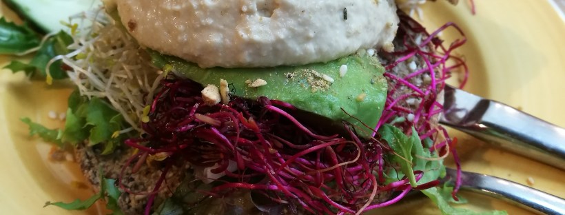 Lunchtip: de Awesome Prana van de Bagels & Beans, deze is belegd met hummus, avocado, kiemgroenten, dukkah (Egyptische kruiden) & sla. Als drankje ging ik voor de Geen Stress!! met daarin sinaasappelsap met wortelsap, gember & Royal Jelly shot.