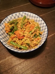 - Tot slot de broccoli rijst toevoegen en doorroeren tot alles gemengd is.