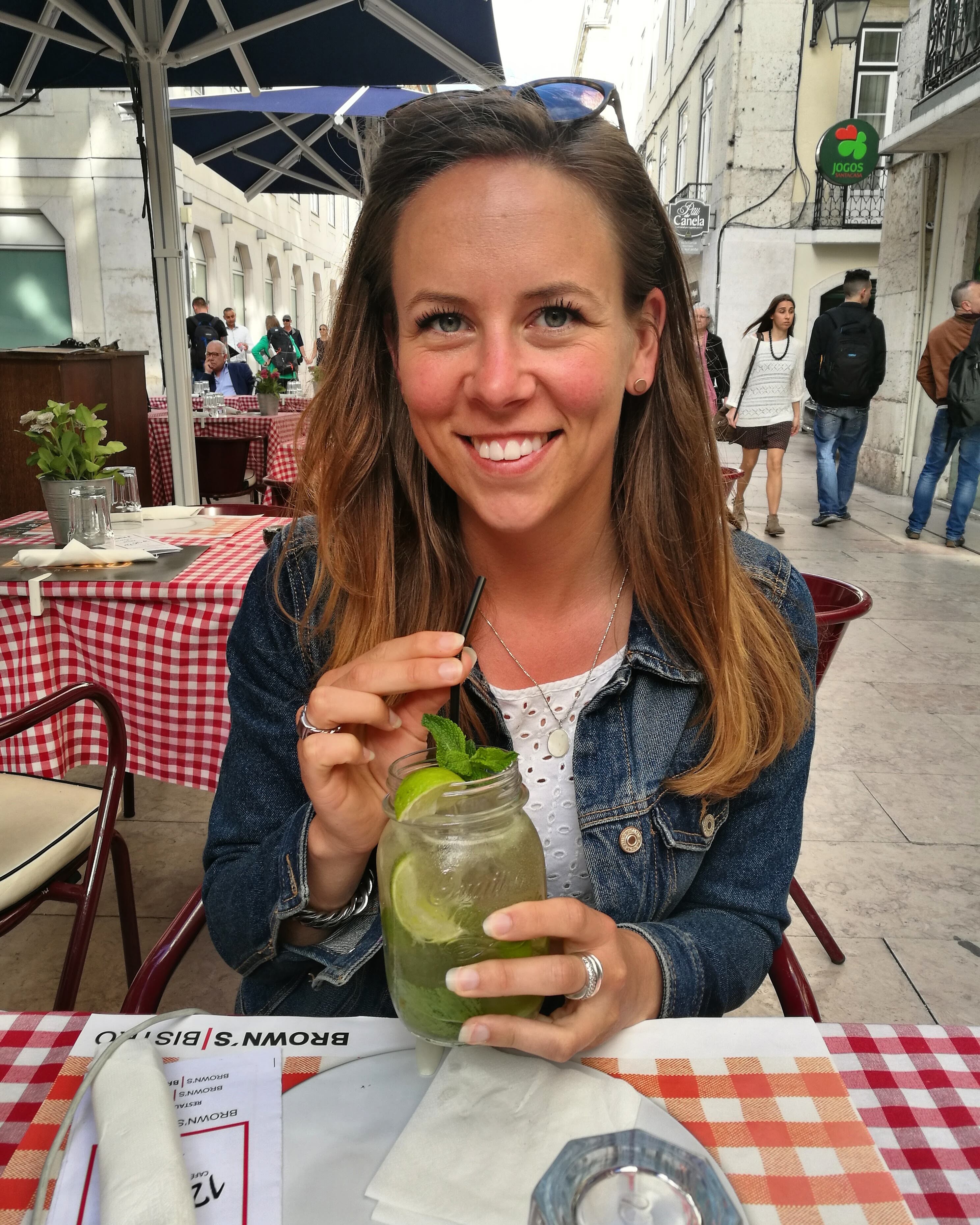 In het winkelcentrum van Lissabon vind je Browns Bistro met happy hour, alsof het nog niet goedkoop genoeg is. Hier maken we maar al te graag gebruik van en drinken hier allebei een cocktail en nog een ander drankje voor slechts €10 in totaal. En volgens mij kun je hier ook goed avondeten als ik mijn zintuigen mag geloven.