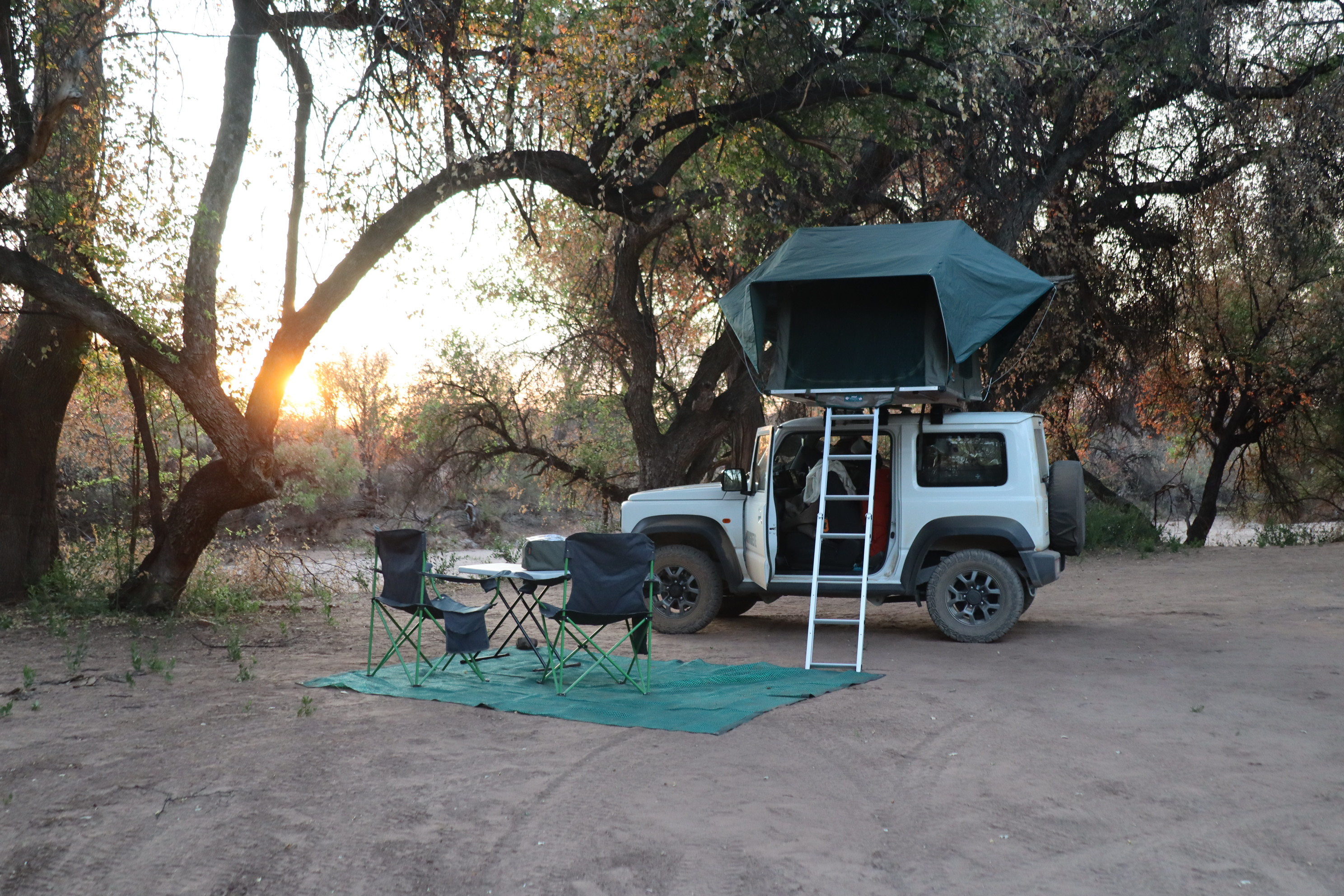 Onze eerste nacht brachten we door op Jimbala Campsite, een plek die we puur op advies hadden gekozen. De campsite zelf was verrassend comfortabel (iets wat je vaker ziet in Namibië): eigen sanitair, kookplek en midden in de natuur.
